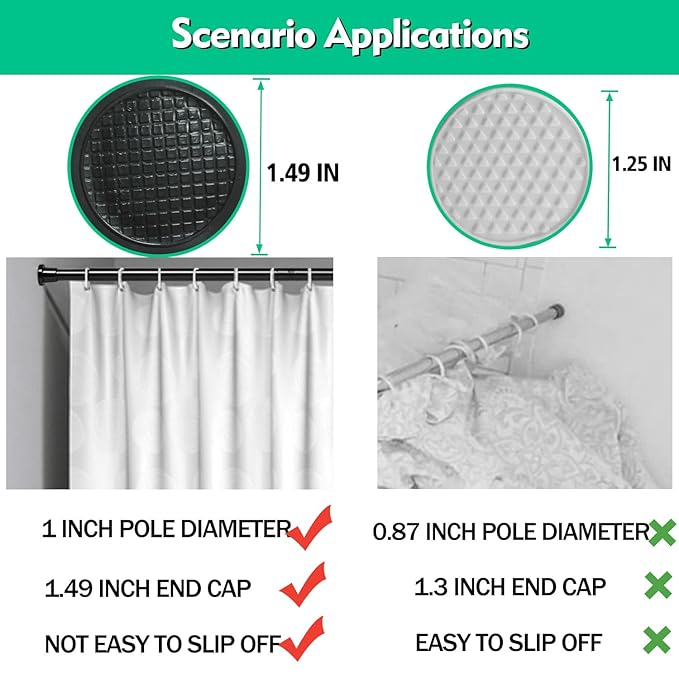 2 round anti-slip pads, This will bring better tension and stability to the shower curtain rod, waterproof and rust-proof, which can adapt to different walls.